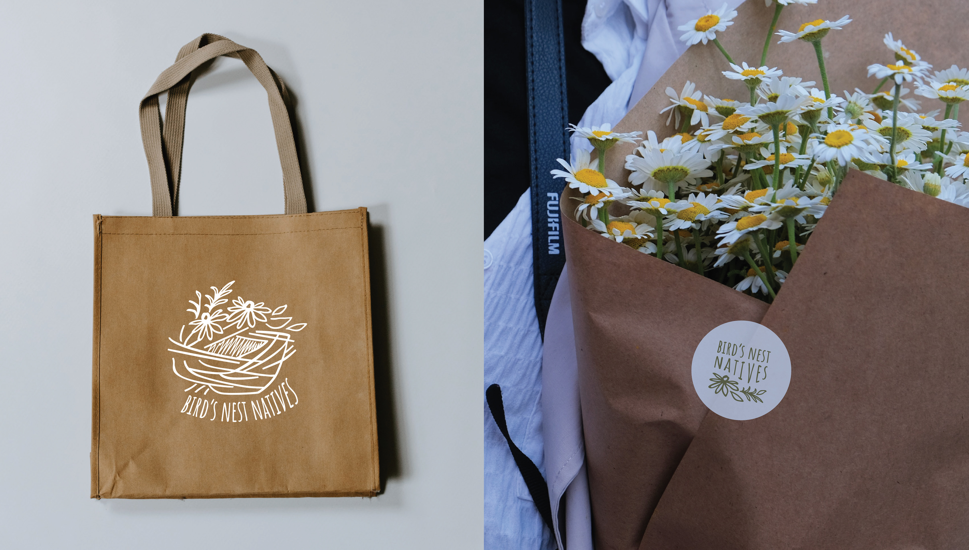 A print-making style logo for a small native plant farm. The logo has earthy feel to match the nature-inspired local business.