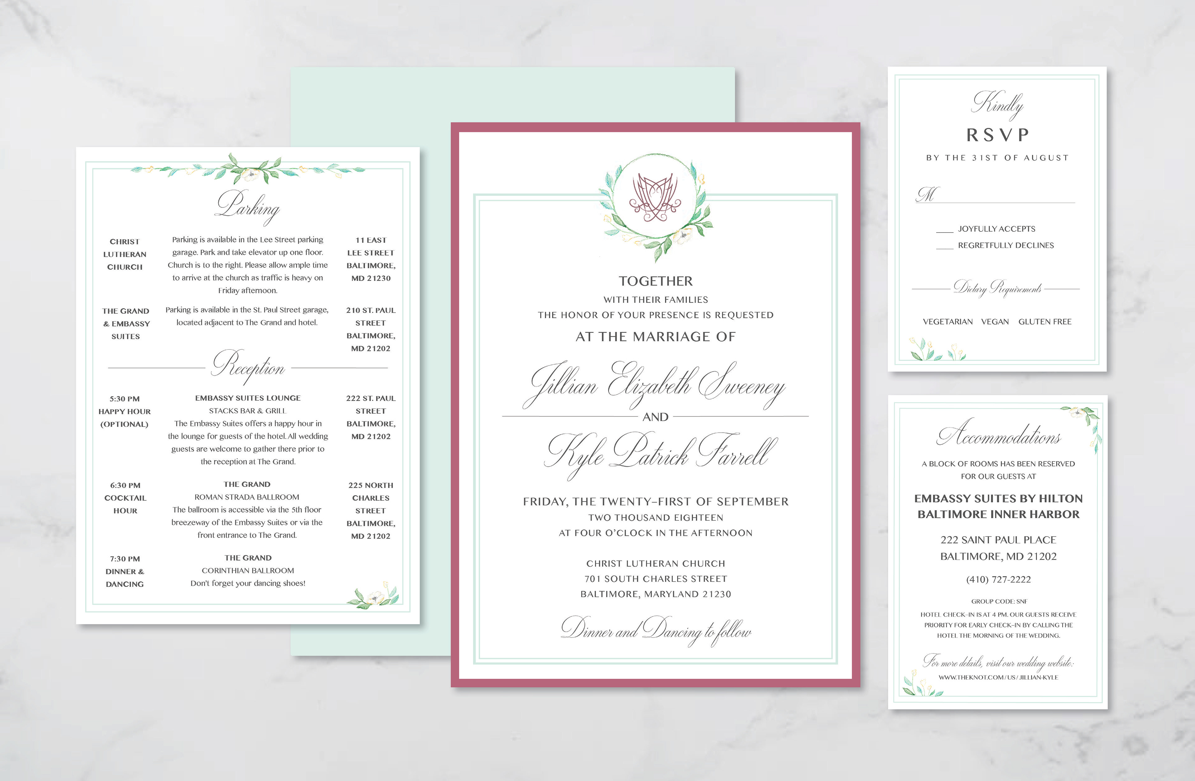 Wedding invitations designed for Jillian and Kyle. Made with hand-drawn flower details.