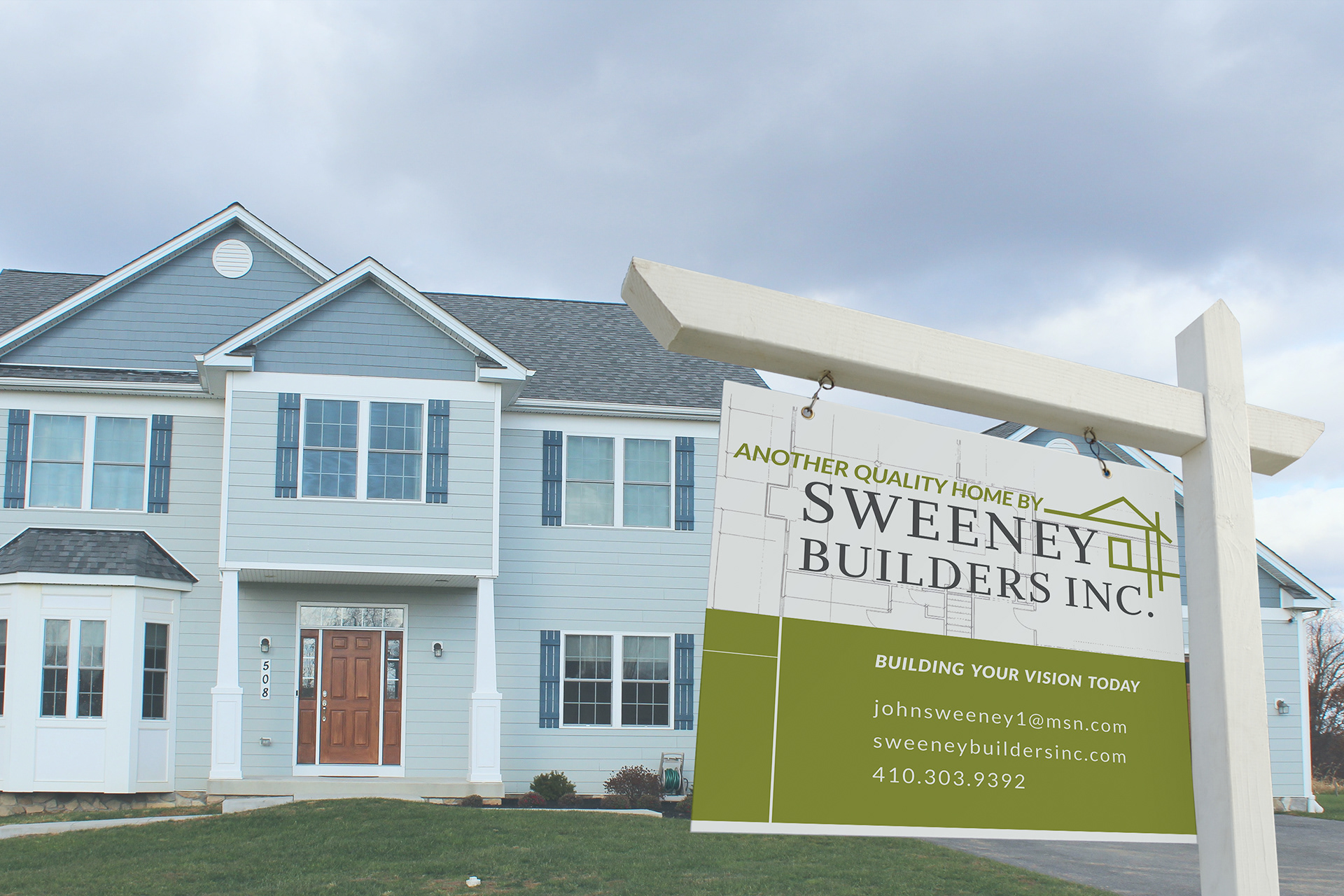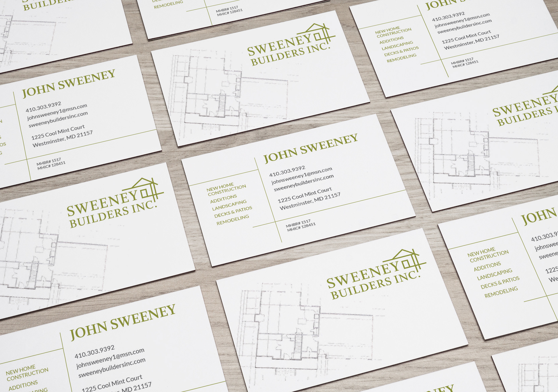 Sweeney Builders Inc. is the construction company owned by John Sweeney, my father. This new branding with a clean design style, communicates the reliability and quality of the work of Sweeney Builders. The logo is composed of a serif font and a blue-print style house design placed in the spaces around the type. The new color scheme incorporates the green from the previous logo but uses a brighter hue, and pairs it with a dark grey. Images of Sweeney Builders’ house plans are the textures for the backgrounds of document layouts. These designs were applied to a stationery set, marketing materials, and different signage. A brand style guide will explain how the new designs are to be used to keep Sweeney Builders brand uniform.